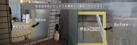 現場調査時にガラスの一部を磨き、施工後の仕上がりをご確認いただけるサービスです。